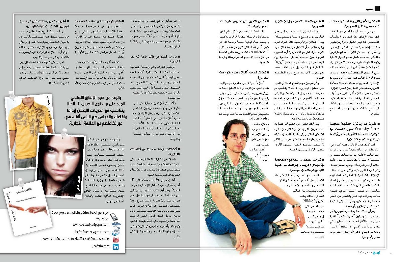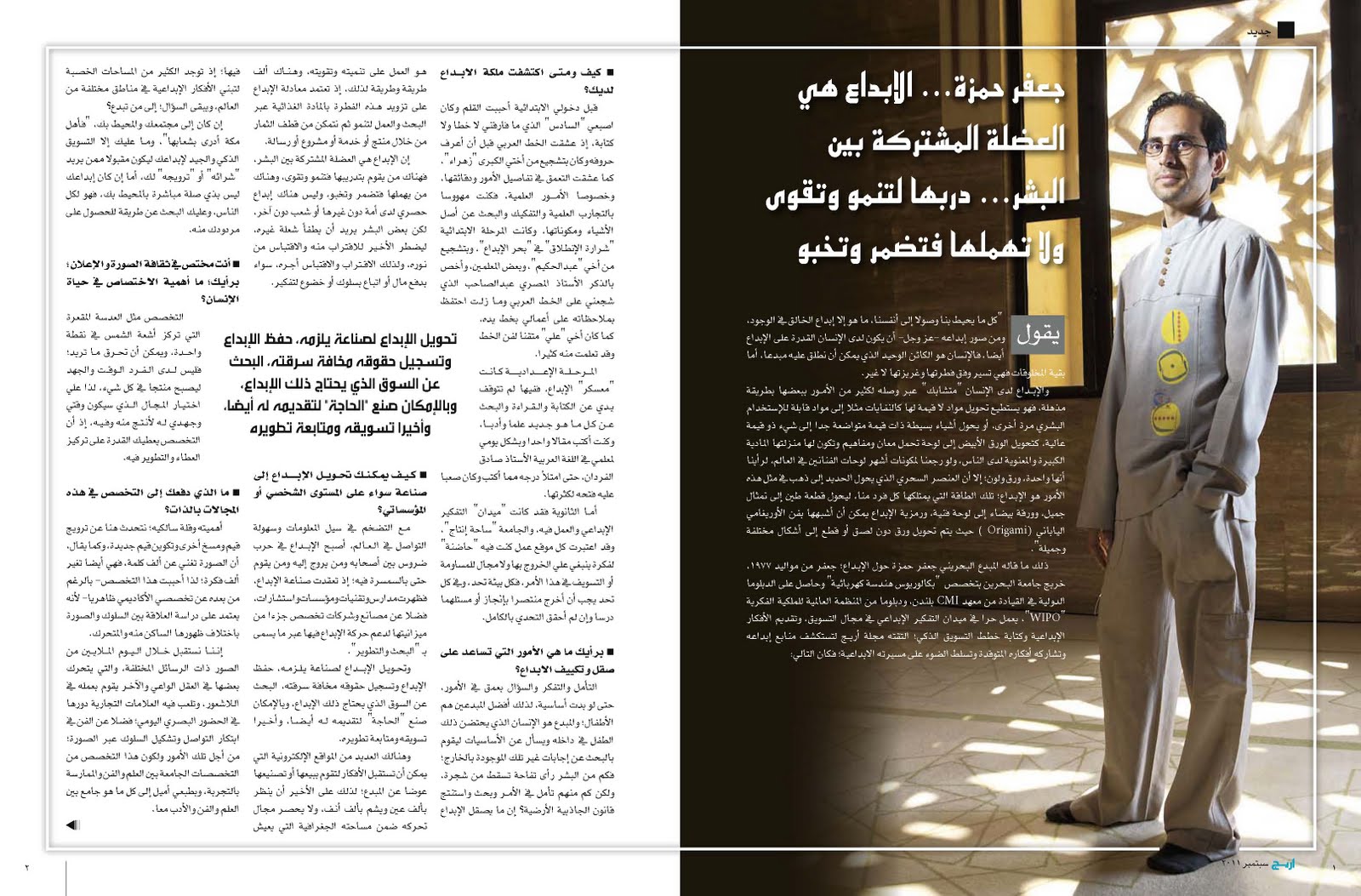 الإبداع هي العضلة المشتركة بين البشر… دربها لتنمو وتقوى ولا تهملها فتضمر وتخبومجلة أريج، شهر سبتمبر ٢٠١١